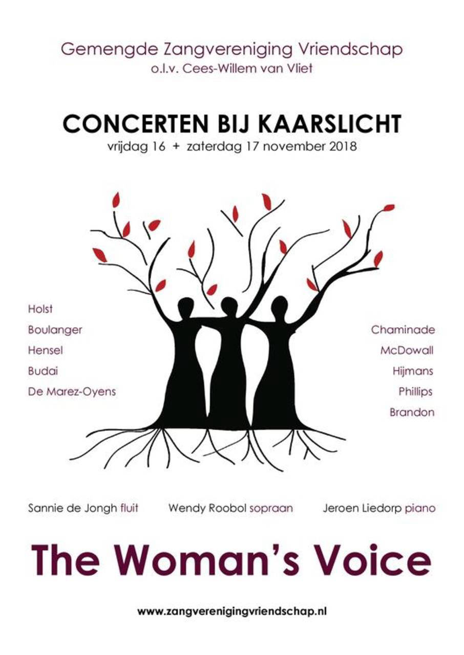 Op vrijdag 16 november 2018 om 20.15 en op zaterdag 17 november 2018 om 15.00 en 20.15 uur brengt Gemengde Zangvereniging Vriendschap in Berkenwoude een prachtige programma, getiteld: The Woman’s Voice. Een bijzonder programma rondom vrouwelijke componisten. Van de middeleeuwse Hildegard von Bingen tot aan de