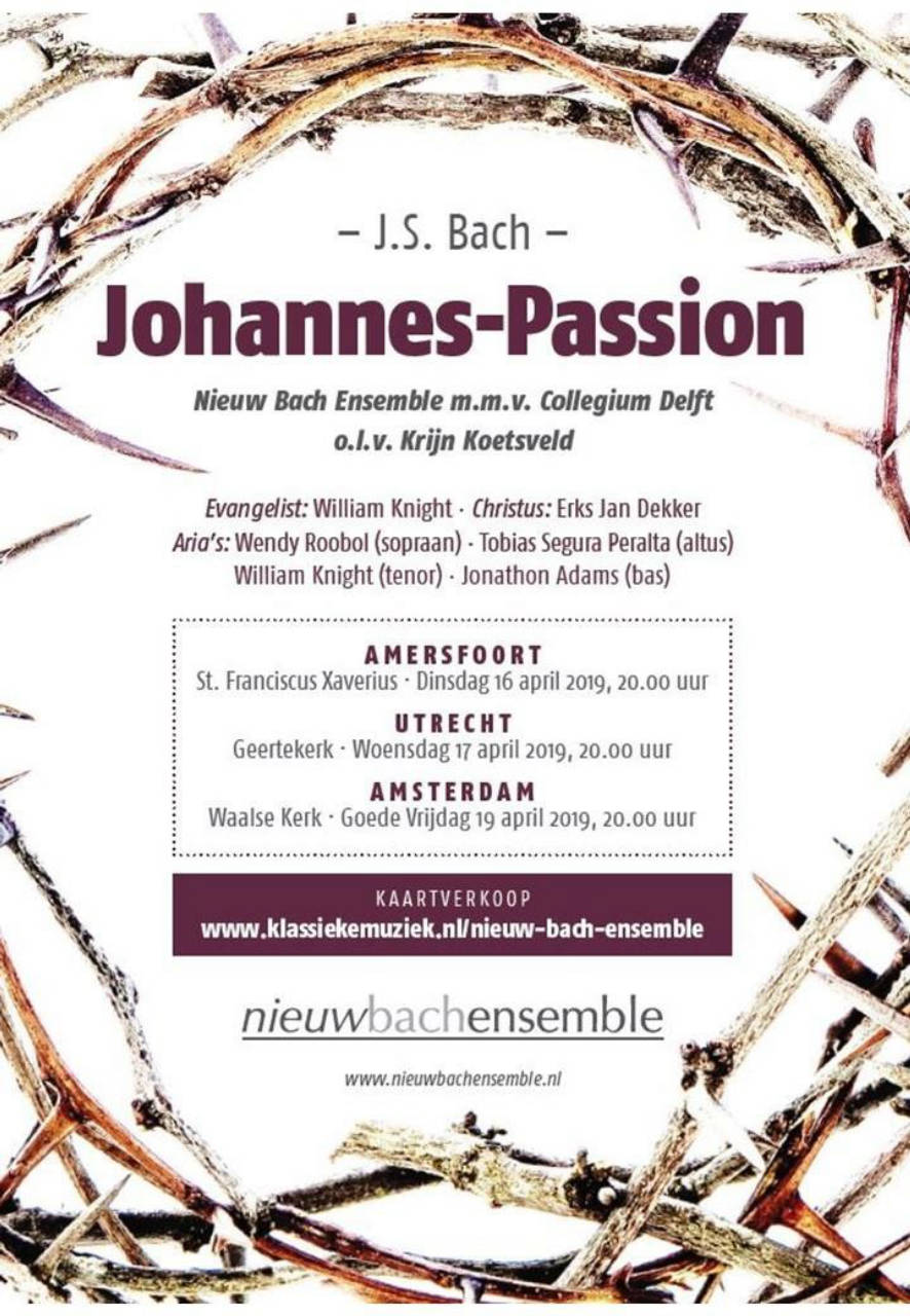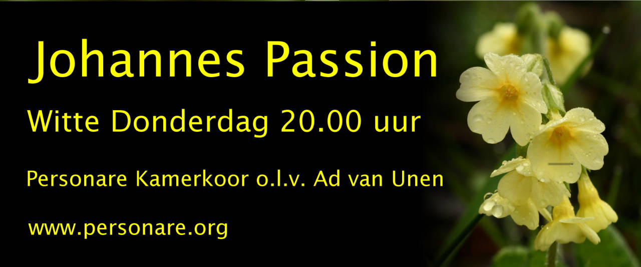 Op witte donderdag 6 april zal ik mijn medewerking verlenen aan de Johannes Passion van Bach met Stichting Personare o.l.v. Ad van Unen in een bewerking van organist en musicoloog Klaas Hoek. Hij heeft een andere visie op het uitvoeren van oude muziek en heeft daar een proefschrift