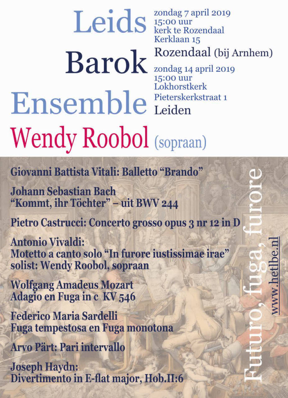 Op zaterdag 24 februari zal ik in de Grote kerk van Elst het virtuoze Laudate Pueri HWV 236 van G.F. Händel zingen. Het is een solocantate voor strijkers continuo en sopraan met spetterende coloraturen op de tekst van Psalm 112/113. Ik voer dit samen met organist Pieter Jan