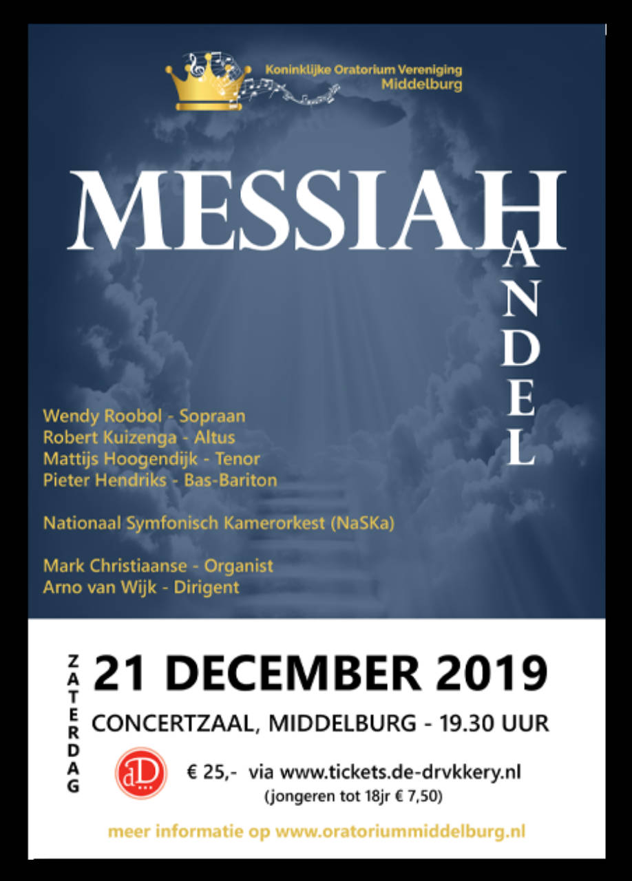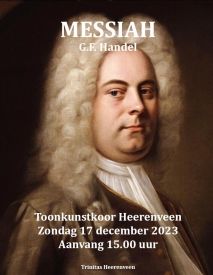 Op zondag 17 december zal ik als sopraansoliste meewerken aan de uitvoering van Händels Messiah van Toonkunstkoor Heerenveen o.l.v. Pauli Yap. Het barok-ensemble Eik en Linde zal het geheel begeleiden en de andere solisten zijn Netty Otter (alt), Falco van Loon (tenor), en Henk Neven (bas).