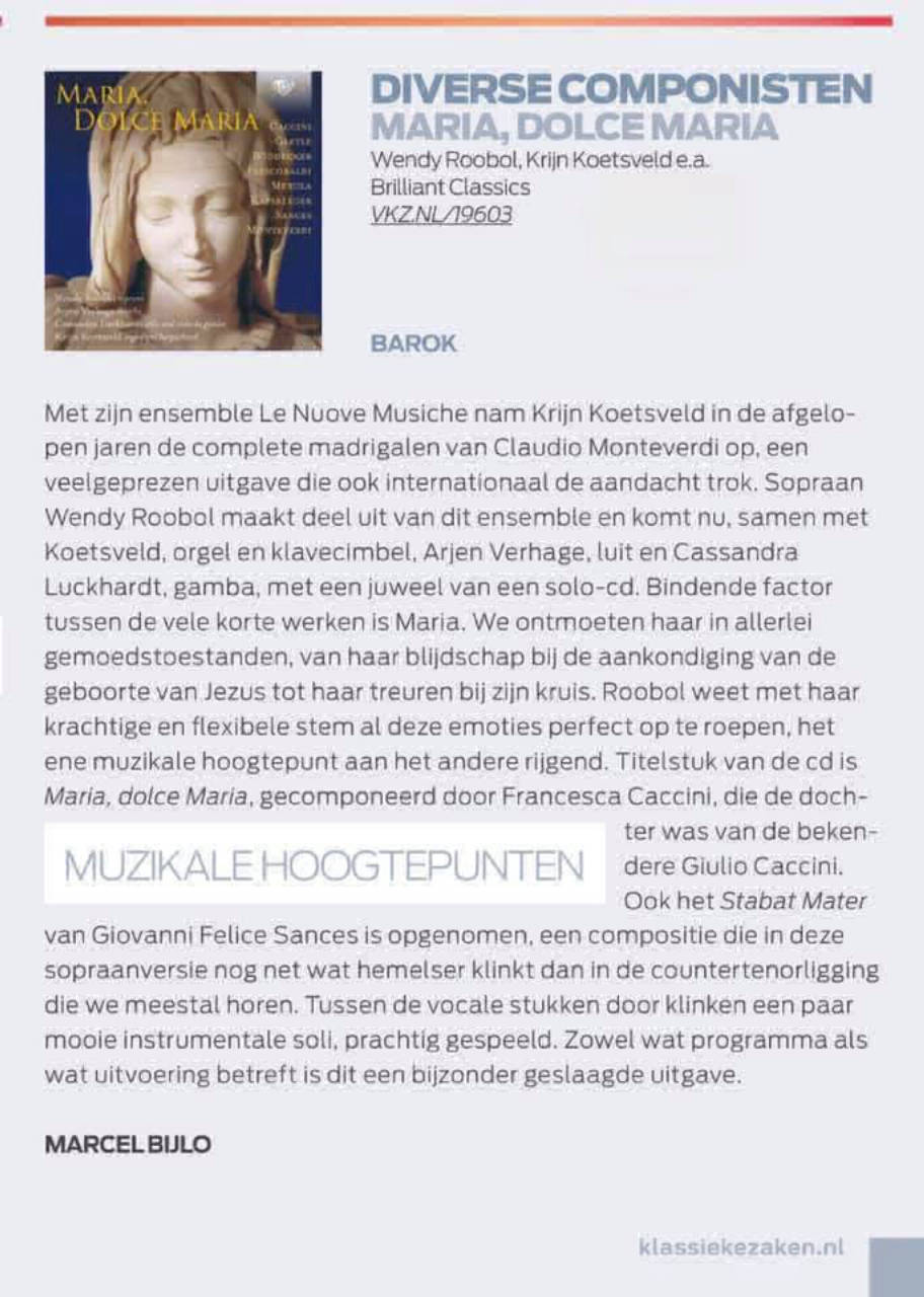 Inmiddels heb ik mijn programma Maria, Dolce Maria, een vertelconcert over het leven van Maria al op vele mooie plaatsen mogen uitvoeren. De gelijknamige cd die ik opnam in 2018 wordt wereldwijd verkocht, en ik heb er al veel leuke reacties op mogen krijgen.