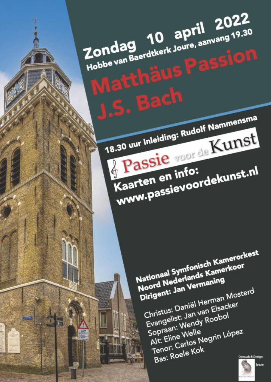 Zondag 2 april ben ik voor de twee keer te gast bij Stichting Passie voor de Kunst in Joure als soliste in de Matthaus Passion. Vorig jaar dirigeerde Jan Vermaning zijn eerste Matthaus Passion en daar was ik erg van onder de indruk. Ook is de Hobbe van Baertkerk mijns