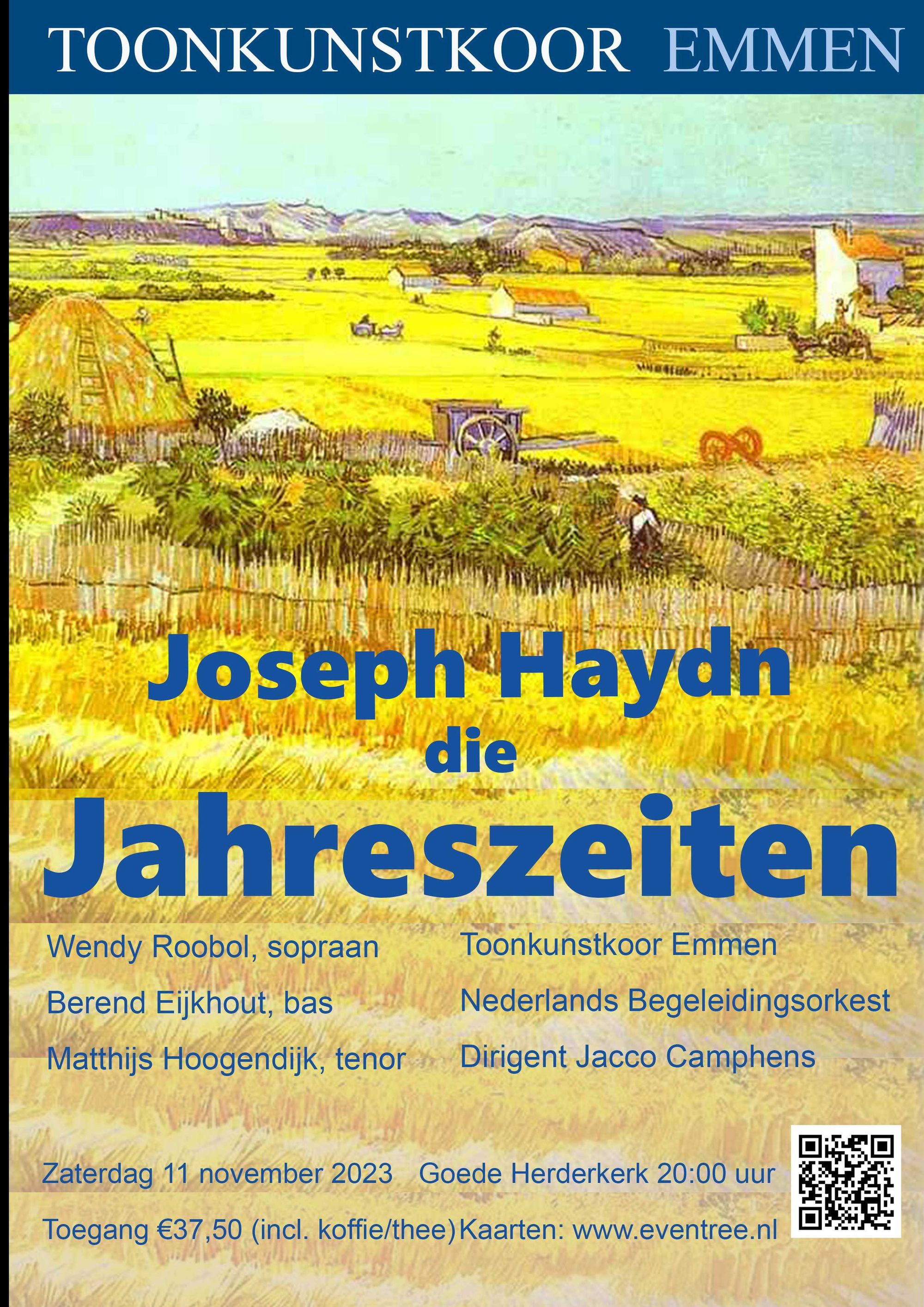 Op zaterdag 11 November staat Haydn’s Jahreszeiten op de lessenaar. Ik vind het een heerlijk stuk om te zingen, de muziek van Haydn is speels, kleurrijk, virtuoos en vol fantasie.